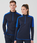 100% polyester single jersey. Wicking finish.Contrast zip neck with stand up collar.Contrast shoulder, upperarm and side panels.Concealed right zip pocket.Contrast stretch bound cuffs and hem.Tear out label.