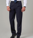 65% polyester/35% viscose. In transition to using recycled polyester.Classic fit.Single pleat.Belt loops.Zip fly with button over.Two side pockets.Rear pocket.Machine washable.