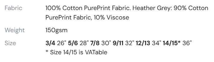 - 100% Cotton PurePrint Fabric. Heather Grey: 90% Cotton PurePrint Fabric, 10% Viscose